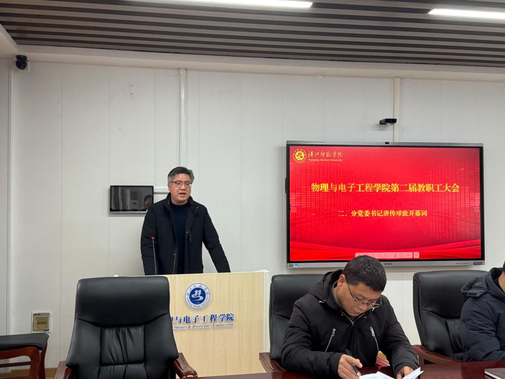 大会分两个阶段举行。在预备会议上,与会人员听取院办主任曾虎作物电公司第二届教职工大会会议筹备工作报告,认真审议并表决通过了《物电公司第二届教职工大会会议议程》《物电公司第二届教职工大会领导小组及秘书长人选名单》《物电公司第二届教职工大会分组及正副组长名单》。