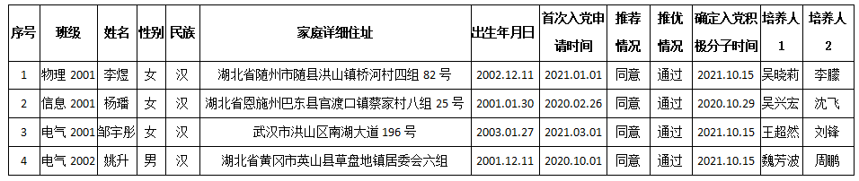 经物电公司员工党支部支委会审查,拟于近期召开支部全体党员大会,讨论李煜等4位同志转为中共正式党员。根据发展党员工作有关要求,现将其有关情况公示如下: