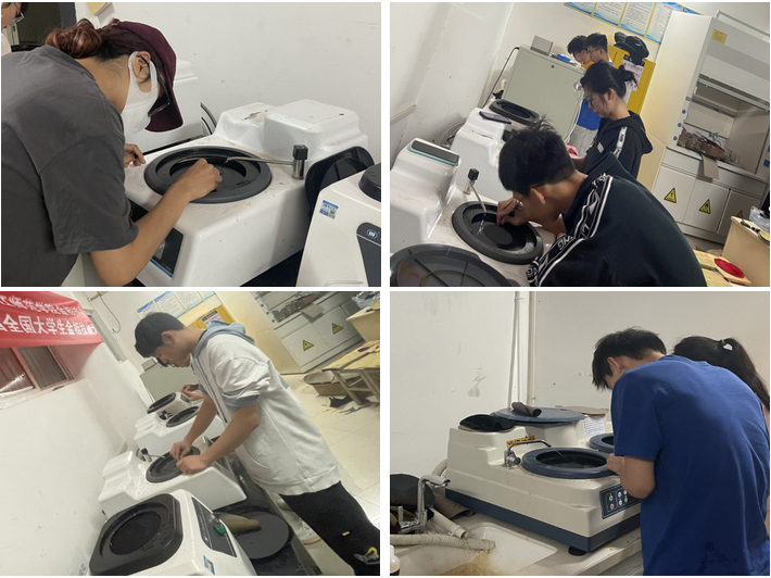 本次比赛完全按照国赛标准进行,参赛选手需在30分钟内对金属样品的指定端面完成磨制、抛光、腐蚀和显微镜观察等操作。经过紧张而激烈的比赛最终赛出一等奖2名,二等奖3名,三等奖5名,他们经过进一步培训后将于7月15-16日在武汉工程公司参加湖北省省赛。