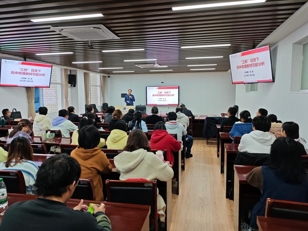 张臣从“练习题设计的总思考”“习题和试题的区别”“教育改革”三个方面对高中物理教材进行详细分析。他强调,要充分发挥习题的建构和培养功能,每一道习题的设计都是有意义、有根据的。同时,他重点从为什么要重视新教材和怎样使用新教材两个方面详细解读了高中物理教材的功能,以生动的案例讲解诠释了高中物理教学的特点和技巧,为中学物理实践教学提供了重要指导。