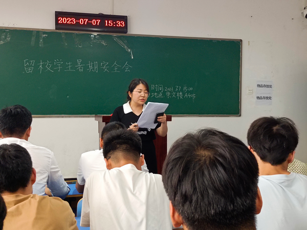 为进一步落实公司关于暑期留校员工安全工作的相关要求,筑牢暑期校园安全屏障,着力增强员工安全意识,切实保障2023年暑假留校工作有序开展。7月7日下午,bevitor伟德在崇文楼A405教室召开2023年暑期留校员工安全教育大会。院分党委书记唐传球、全体辅导员老师、竞赛指导老师及全体暑期留校员工参加了大会。
