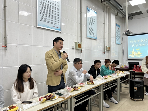 表演结束,与会师生唠家常、讲故事、问冷暖、话团结,会场氛围热烈,其乐融融。唐传球鼓励同学们努力学好专业知识,积极参加公司、公司的活动,大胆展示自我、提升自我,全面提升综合素质;同时各民族同学要相互尊重、相互包容、相互欣赏、相互学习、相互帮助,像石榴籽一样紧紧抱在一起,铸牢中华民族共同体意识;希望同学们掌握过硬本领,担当“强国一代”使命,将来为祖国建设贡献自己的青春和力量。