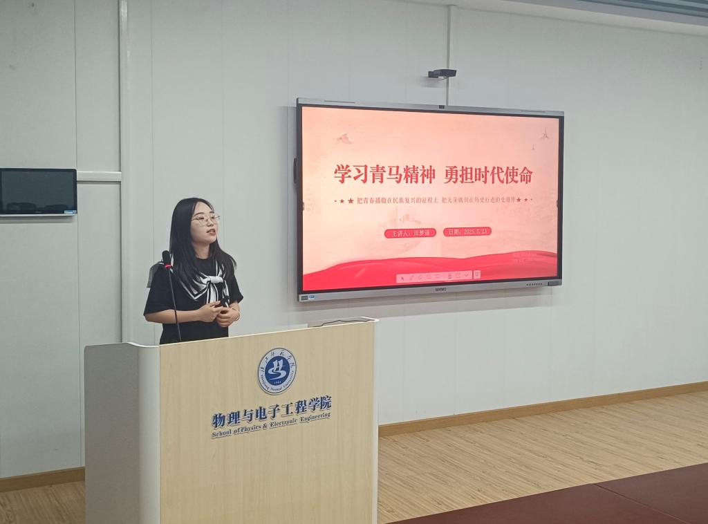 开班仪式结束后,“青马工程”培训班第一讲正式开讲。第一讲由田梦谣作为主讲人,她以“学习青马精神,勇担时代使命”为主题,从什么是“青马工程”、“青马工程”的培养目标与内容、牢记初心历史、把握时代脉搏以及勇担光荣职责等方面进行了深入浅出的讲解。